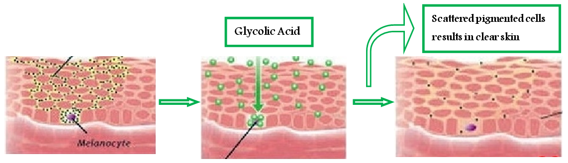 Glycolic Acid: Glycolic acid is also known as alpha-hydroxyl acid. Sometimes it is combined with other agents because of its skin lightening property. As like other agents, glycolic acid also works by inhibiting the tyrosinase activity. Glycolic acid accelerates the desquamation of pigmented cells.