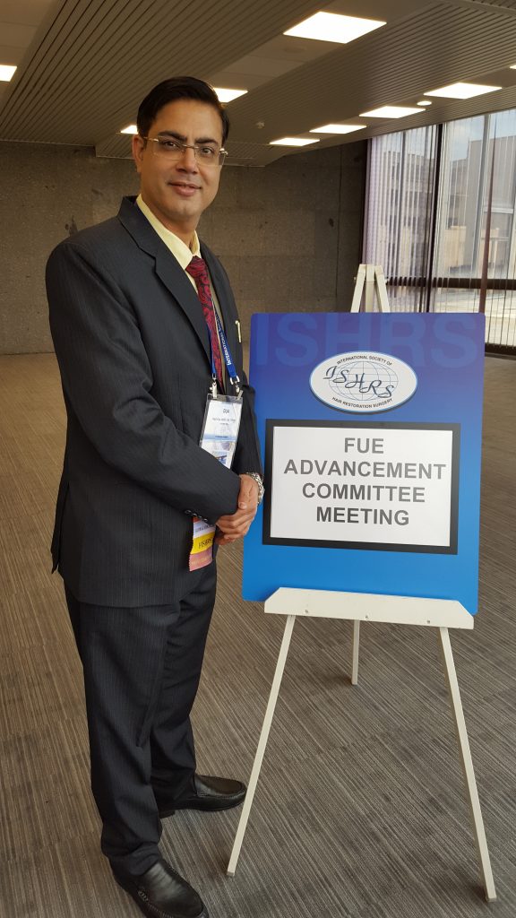 Along with this, he also attended the Board of Governors meeting of ISHRS; represented India in the Global Council meeting; FUE Advancement committee and presented a poster on topic “How do I choose a blunt or a sharp punch? – A scientific assessment.” In his poster he scientifically proved that the Flat punch developed by author is better than the other available sharp punches in the market. The contribution of the Indian doctors was applauded by everyone.
