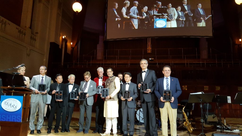 Dr. Kapil Dua collecting awards on the behalf of AHRS India