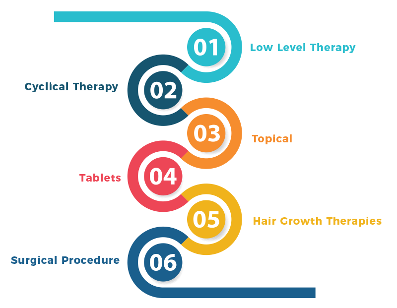 Cyclical therapy for hair growth includes various amino acids, hair growth enhancers, supplements or vitamins for faster hair growth. For a period of time, you will have to stick to this therapy for hair growth. Along with these supplements for hair growth, you can combine low-level therapies or other hair growth therapies for better hair & faster hair growth results.